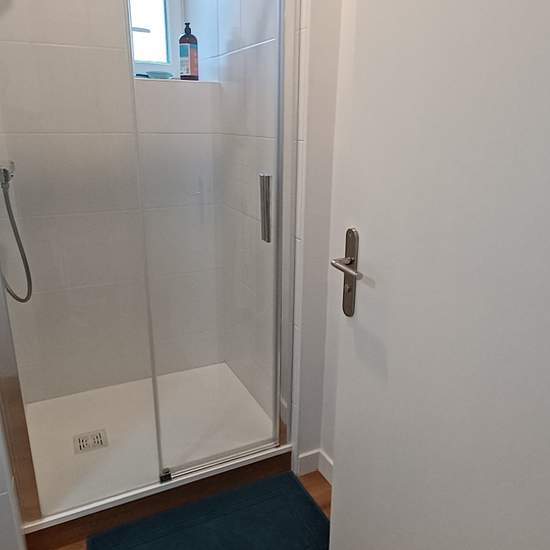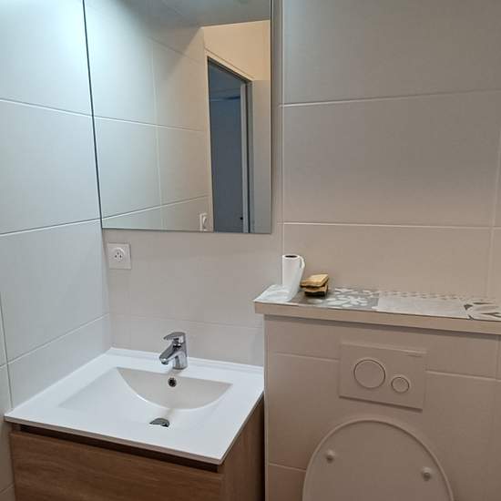 Au Relecq-Kerhuon, pleine vue mer pour cet appartement au 1 er étage d'une petite copropriètè rénovée, entrée avec placards, une cuisine aménagée et équipée, une pièce principale , une salle d'eau avec wc. Libre mi-octobre 2025