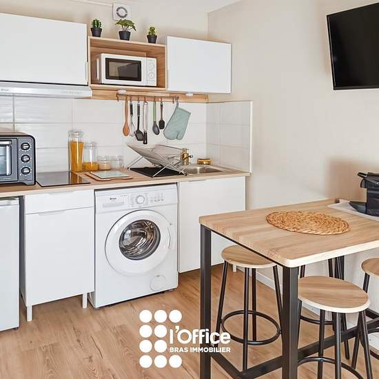 TANCHET LES SABLES D'OLONNES - Référence #384 À deux pas de la plage de Tanchet dans un quartier résidentiel calme, studio meublé de 20.01 m² situé au RDC avec une grande terrasse. Composé d'une pièce de vie lumineuse avec une cuisine aménagée et entièrement équipée (meubles de rangement, évier, plaque à induction 2 feux, réfrigérateur table top, four, micro-ondes, hotte, machine à laver, accompagnée de tout le nécessaire de cuisine), un espace nuit séparé offrant de nombreux rangements dont un lit de 140x200 avec tiroirs, une salle d'eau fo...