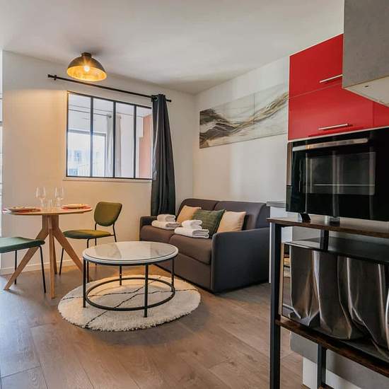 Le logement Ce logement est disponible pour un bail mobilité UNIQUEMENT. Le bail mobilité est un type de bail de location meublée de courte durée. Il vise à faciliter la mobilité des locataires, et notamment des raisons professionnelles ou scolaires. Il s'agit d'un studio de 27m2, situé au 6eme étage avec ascenseur. Le logement se compose : Une cuisine ouverte entièrement équipée : réfrigérateur, plaques à induction, machine Nespresso, bouilloire, toaster, four, micro-ondes, lave linge ... Un salon avec un canapé, une table à manger et TV Un...