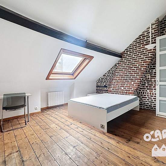 [ À LOUER ] à Lille, rue d'Artois - Une chambre de 12 m² dans une maison de colocation (6 chambres) de 150 m² Loyer mensuel charges comprises : 530 euros - Dans la chambre privative : - La pièce de nuit équipée d’un sommier a latte 140 x 200 , un matelas 14 x 200 , un bureau, une table de chevet, une lumière sur pied - Les pièces communes aux colocataires de la maison : - Une entrée - Un WC individuel - Un espace cuisine entièrement équipé (Four, plaque de cuisson 4 feux, frigo , micro-onde, évier, lave-vaisselle, cafetière , bouilloire, ta...