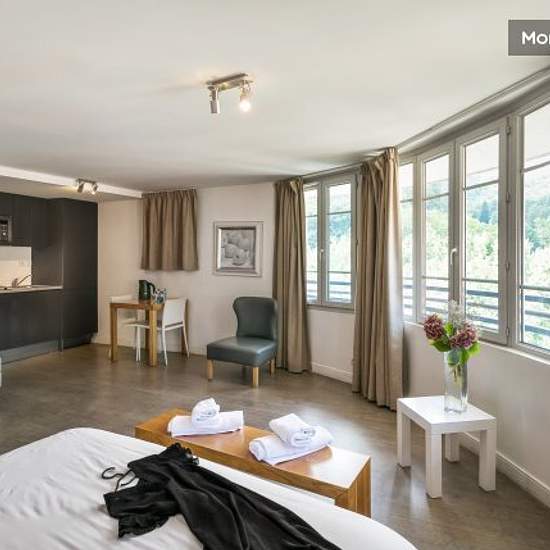 Close to the centre of Lourdes, the shops and the town's main attractions, our establishment offers fully-equipped and furnished flats and studios. Each flat has a living room, a fully-equipped kitchenette and a bathroom with bath and private WC. The kitchen has a microwave oven, fridge, ceramic hob and everything you need for cooking. Bed linen and bath towels are provided on arrival. The flat also has a flat-screen TV and free WiFi access. Please note that the apartments are accessible to people with reduced mobility. The residence also of...