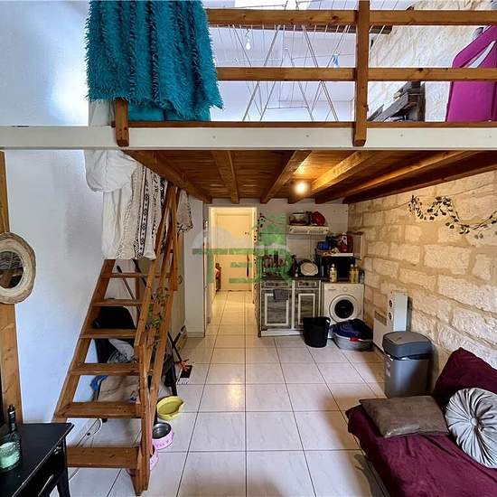 LOCATION STUDIO LUNEL QUARTIER ARÈNES - 2ÉME ÉTAGE, 25.58m² : À la location, studio mezzanine de 25.58m² sur Lunel quartier des arènes. Le bien se compose d'une entrée avec placards de rangement menant au séjour avec coin cuisine semi équipé (hotte, placards de rangement, plaques vitrocéramique). La pièce à vivre est éclairé par une fenêtre donnant sur la rue (sans vis à vis). Du séjour, un escalier en bois mène au coin mezzanine avec fenêtre de toit. Enfin de l'entrée, une salle de bain (baignoire, vasque sur meuble de rangement, W.C.) comp...
