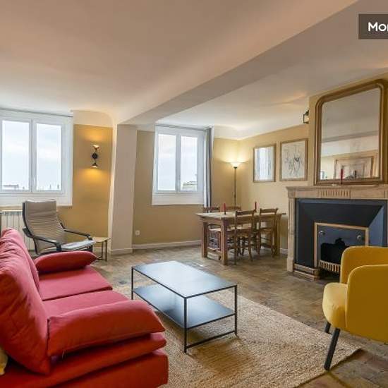 Beautiful 50 m² flat ideally located in Lyon's 1st arrondissement. It comprises a bright living area with a separate kitchen and an alcove with a TV area. There is a bedroom (160cm double bed) with built-in wardrobe. The flat also has a kitchen/dining room, a lounge and a small utility room. Bathroom with shower and WC. The flat is fully equipped, including washing machine, dishwasher, iron and ironing board, hairdryer, TV, etc. On the 7th floor with lift. Includes a wifi internet connection, a maintenance visit every 2 weeks with the possib...