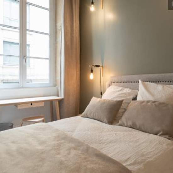 Joli appartement 1 chambre de 45 m² Spacieux, refait à neuf en 2022 Charme de l'ancien et décoration moderne A 5 minutes à pied de l'Opéra de Lyon et du métro Hôtel de Ville : lignes A et C Transport direct pour Bellecour et Croix Rousse A quelques pas des quais de Saône et du Vieux Lyon Bus direct de la Part Dieu ou métro de Perrache
