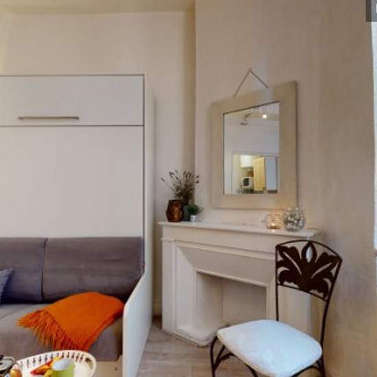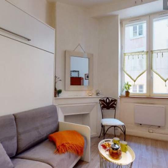 L'Arpège Opéra Cosy studio meublé en plein centre-ville sur une cour privée. Situé à deux pas de l'Opéra, l'Hôtel de Ville et le Musée des Beaux-Arts, au deuxième étage d'un bel immeuble avec cour privative et son parc à vélo et aux escaliers de pierre typiquement lyonnais, l'Arpège Opéra est un studio meublé de 17m2. Lumineux avec une grande fenêtre (volets extérieurs) donnant sur une traboule, cet appartement est composé d'une pièce à vivre avec un VRAI LIT (lit qui se rabat sur banquette). Les volumes ont été travaillés avec un architecte...