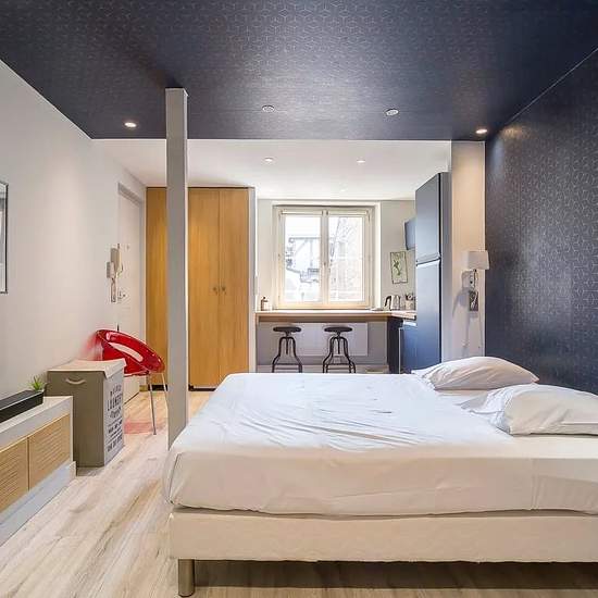 Studio de 20m², entièrement équipé et optimisé. Vous retrouvez une pièce de vie qui comprend un lit double installé en face de la télévision pour vos moments de détente, un petit canapé et des rangements. Le séjour est aussi composé de l'espace cuisine, ustensiles et appareils de cuisine mis à votre disposition. La salle de bain est moderne et fonctionnelle avec douche à l'italienne. A louer dans le cadre d'un bail de droit commun (bail code civil, résidence secondaire, logement de fonction). L'appartement ne sera en aucun cas la résidence p...