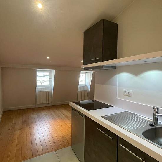 Studio Lyon plein Cordeliers 32,78 m2. À louer dans un secteur privilégié T1 bis non meublé de 32,78 m² habitable + 3,78 m² utile, situé au 6ᵉ étage avec ascenseur au 8 rue de la Poulaillerie. L’appartement dispose d’un espace nuit en second jour. Il se compose d’une entrée, d’un coin cuisine équipé (meubles, plaques de cuisson, réfrigérateur, hotte, lave-linge), d’un séjour, ainsi que d’une chambre avec lit et matelas. Vous trouverez également une salle d’eau et des toilettes indépendantes. Le chauffage est individuel électrique. Loyer HC ...