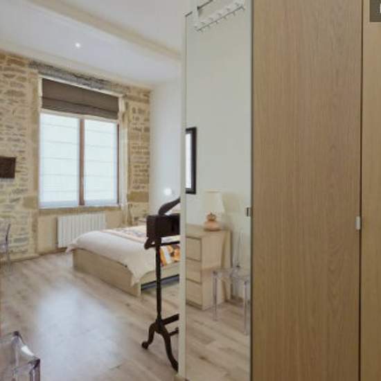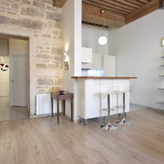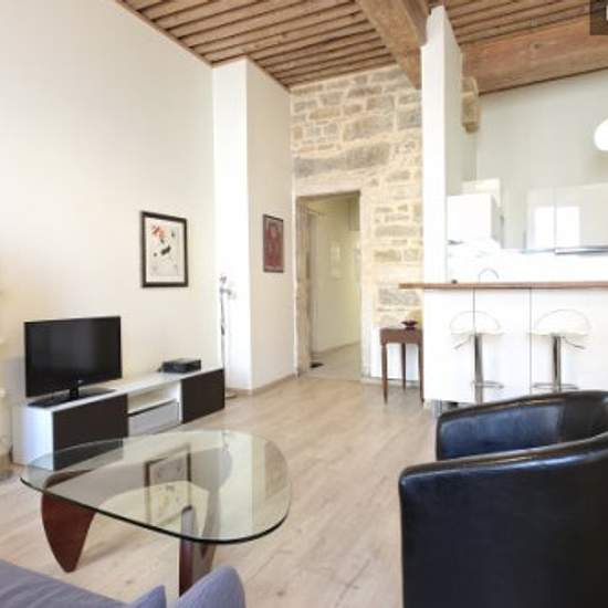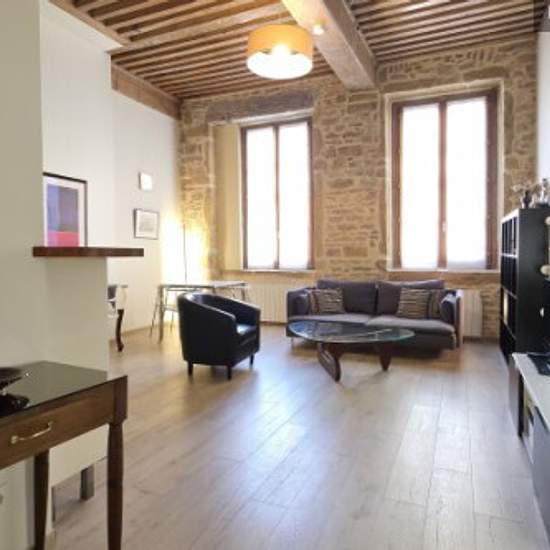 Magnifique appartement de 60m² avec un charme typiquement lyonnais Idéalement situé à Lyon 2 dans le quartier très prisé d'Ainay Le logement donne entièrement sur cour, ce qui assure son calme et sa sécurité Découvrez la disposition des pièces : – pièce de vie avec canapés (couchage pour 1 personne), 2 fauteuils, table basse, 2 bibliothèques, table et chaises – cuisine entièrement équipée – chambre avec lit double 160/200, armoire avec penderie, commode et bureau – salle d'eau avec douche et vasque sur meuble – WC indépendant Logement situé ...