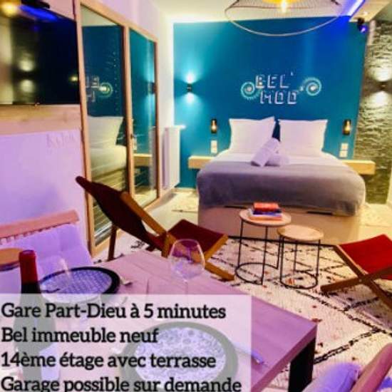 Séjournez dans le luxe, la modernité et le high Tech de ce très joli studio, situé dans le 3ème arrondissement, à 5 minutes à pied de la gare Part-Dieu, 6 du centre commercial et du fameux quartier des Brotteaux, un des quartiers les plus animés et les plus attrayants de Lyon. Etant au 14ème étage d'un immeuble de 57 m de hauteur, ce magnifique logement, tout neuf, est doté d'un vaste balcon, avec une vue imprenable, qui coupe le souffle et qui donne sur les toits du nord de la ville des Lumières. À l'intérieur, toute facilité est à votre di...