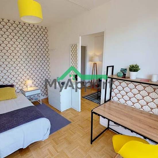 Découvrez les chambres privées de notre partenaire Coliving.com Cette belle chambre privée dans une colocation entièrement équipée, meublée et tout compris à Lyon est un mélange de confort et de design. Elle dispose d'un mobilier de maison, dont un lit avec oreillers et couette. Il ne manque que vos affaires pour vous sentir chez vous ! La chambre peut être fermée à clé si vous avez besoin d'intimité.Toutes nos chambres sont entièrement meublées (lit, bureau, armoire, couette, oreillers...). La colocation est située dans le quartier 'Jean Ma...