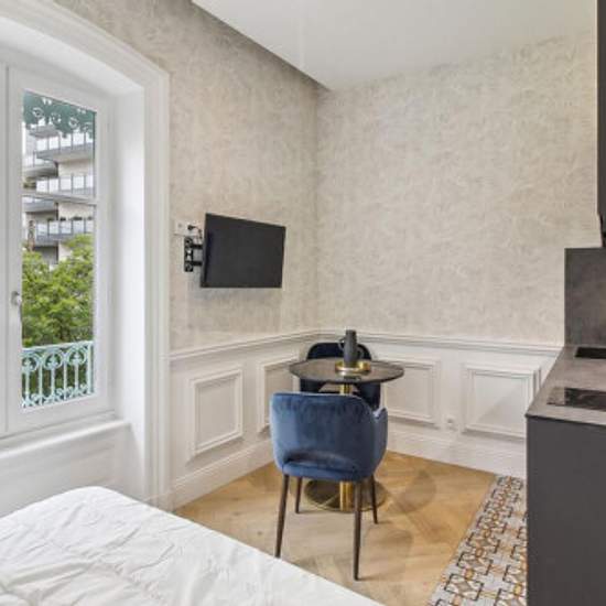 Réf : 40TISSOT3 Disponible le 23 janvier 2026 Immobilière DABRETEAU vous propose, un studio meublé de standing, situé au 1er étage d'un immeuble d'habitation sécurisé et donnant sur une cour privative. L'appartement de 15.68m² se compose d'une entrée donnant sur le coin nuit avec deux grands placards de rangement + télévision. Une cuisine ouverte équipée (plaque de cuisson, hotte, machine à laver, micro-onde, machine à café, bouilloire et grille-pain). Une chambre avec literie neuve et confortable. Une salle d'eau avec WC. Le chauffage et l'...