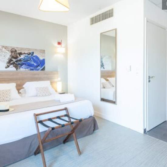 Sur les rives de la Siagne, la résidence est située à seulement 1.4 km de la plage, accessible à pieds en 10 minutes, et à 15 minutes du centre-ville de Cannes. Elle se trouve à 7kms du Palais des Festivals de Cannes, et 2kms du Centre Expo Congrès de Mandelieu. Le cadre de la Presqu'île de Robinson fera de votre séjour une pause calme sur la Côte d'azur dans des appartements tout équipés. La piscine extérieure est ouverte en saison (à partir de juin). Le studio est équipé d'un lit double et de tout le confort nécessaire à votre séjour. Les ...