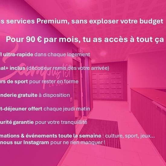 OFFRE EXCEPTIONNELLE : 100 EUR OFFERTS pendant 5 mois ! QUARTIER de la DEMI-LUNE A 5 min à pied de la gare, des lignes de bus, proche toutes commodités et des universités Tu recherches un logement confortable et sécurisé dans une résidence neuve, cet appartement est fait pour toi ! La résidence propose de nombreux services pour te simplifier la vie pour seulement 90 EUR/mois (détail en photo ! ) : Des espaces communs (cuisine, buanderie, salle de sport, coworking) sont à ta disposition.Ici, tout est pensé pour ton confort et ton bien-être ! ...