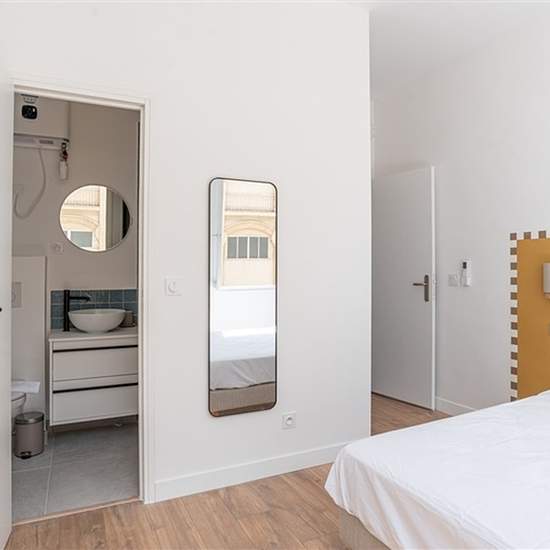 Nous vous proposons à la location une chambre de 14 mètres carrés dans un coliving tout neuf composé de 4 étages : 4 T2, un studio, 8 chambres ainsi que les espaces communs (salon TV, cuisine, salle à manger, terrasse, jardin, buanderie). La chambre possède sa propre salle d'eau avec WC, un bureau avec télé, des rangements, un lit double et une climatisation réversible. INTERNET – ÉLECTRICITÉ – ASSURANCE HABITATION compris dans les charges