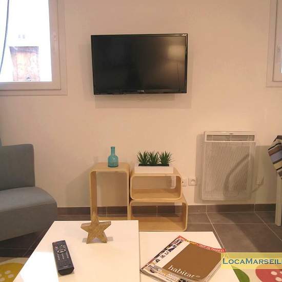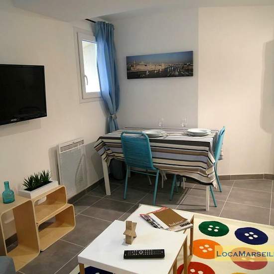 T2 en location meublée à marseille d'environ 30m² très bien agencé, neuf,dans un petit immeuble rénové au cœur du panier. Equipement complet ( écran plat, wifi, lave linge, micro ondes, vaisselle, linge de maison...).Séjour avec canapé convertible, coin repas pour 4, cuisine équipée ouverte, salle d'eau, dressing, chambre avec lit double et commode. Cet appartement conviendra parfaitement pour découvrir Marseille lors d'un séjour d'études ou une mission professionnelle... La rue de la République est toute proche à pied ainsi que le métro Vie...