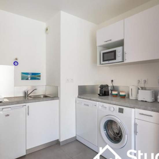 Découvrez ce studio moderne de 52 m², situé au quatrième étage d'un bâtiment art déco rénové, dans le quartier dynamique du 2ème arrondissement de Marseille. Appréciez l'élégance et le confort de cet espace idéal pour un séjour urbain. Avec une surface de 52 m², cette location se compose de : - une grande pièce à vivre lumineuse avec un lit double 160x200 cm et un espace repas, - une cuisine séparée, parfaitement équipée (machine à café, grille-pain, mixeur, bouilloire, four micro-ondes, plaques de cuisson, lave-vaisselle, réfrigérateur, con...