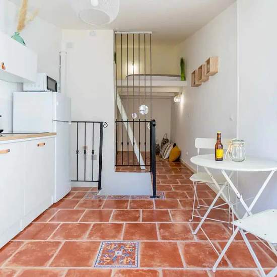 [EN] Ideally located in the heart of the Basket this mezzanine apartment benefits from a terrace with views of the Old Port, all the comforts and the little extras that make the stay unforgettable: WIFI, HD TV, reversible air conditioning, Nespresso, kettle, equipped kitchen, dishes, bed linen and towels of hotel quality. During the day, you can visit on foot the Mucem, the Old Charity ... and in the evening enjoy the lively Place de Lenche with its bars and restaurants. The space As often in the Basket, the apartment is located in a typical...
