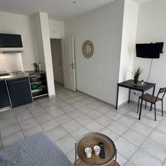 Sur la rue de la République, studio meublé comprenant une entrée avec placard, une pièce à vivre (clic-clac, table basse, table et chaise, télévision) avec cuisine ouverte aménagée (mobilier, plaque, hotte, micro-ondes, frigo, vaisselle), une salle d'eau avec WC et un balconnet. Le bien ne comporte pas de machine à laver. Les charges comprennent l'eau froide, l'entretien des parties communes, la taxe d'ordures ménagères et la box ADSL.