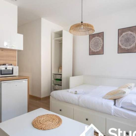 Découvrez ce studio de 25 m2 décoré avec goût, situé à proximité des Terrasses du Port. Quartier la vilette/hôpital européen A proximité immédiate de Kedge business school, le lycée international, CMA CGM ... Situé face a une Salle de sport, et à 300m du métro désirée Clary. Il comprend un espace chambre/salon équipée de rangements pour vos affaires et un canapé lit. La pièce à vivre offre un coin canapé, une table à manger et une cuisine entièrement équipée avec un micro-ondes, plaques, une machine à café et un lave-linge. La salle de bain ...