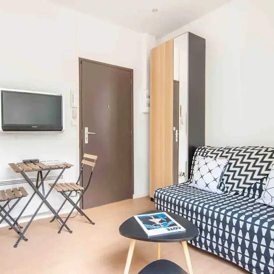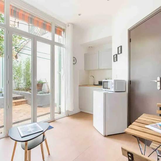 [EN] An entirely new space with functional furniture. Feel at home without feeling like you'reat home. A kitchen equipped with a little extra that changes everything, a Nespresso coffee maker available. A small balcony in front of the apartment The space The highlight of this apartment is its location, its private entrance and its recent renovation carried out with taste. It consists of a beautiful room in which are: -A sleeping area with a king size bed and a wardrobe -A double sofa bed facing an HDTV equipped with Freebox (including 800 ac...