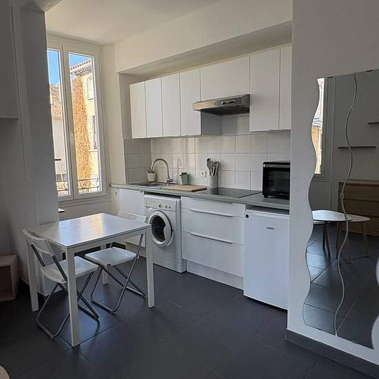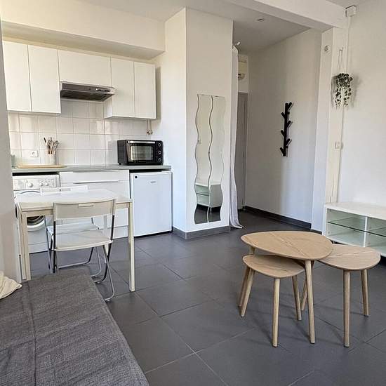 Dakey's Immobilier vous propose à louer un grand studio d'une surface de 23m² à proximité immédiate du parc du 26ème centenaire et des accès aux autoroutes. L'appartement bénéficie d’une belle luminosité et du calme. De plus, l'appartement dispose d'une climatisation réversible. Appartement meublé et équipé : Séjour/Coin nuit : - Canapé convertible - Table et chaises - Tables basses - Commode - Meuble TV - Placard Coin cuisine : - Réfrigérateur - Plaque de cuisson - Ustensiles de cuisine - Matériel d'entretien - Four - Lave linge Salle d'eau...