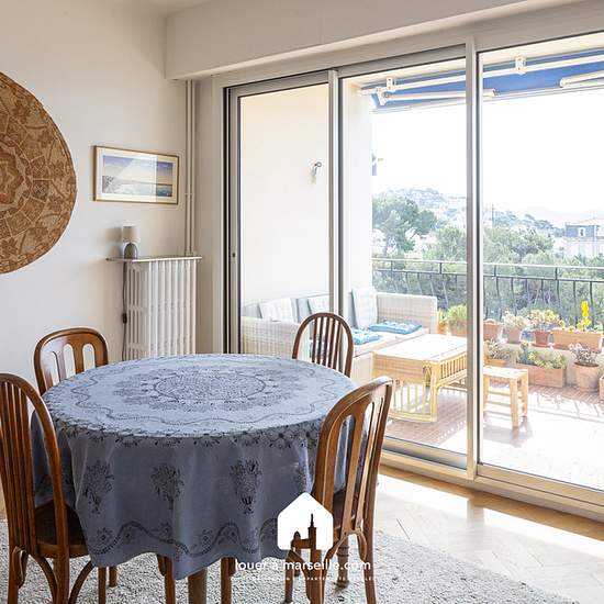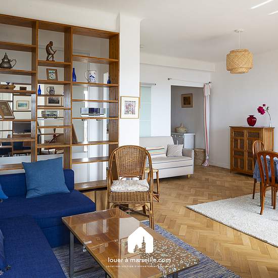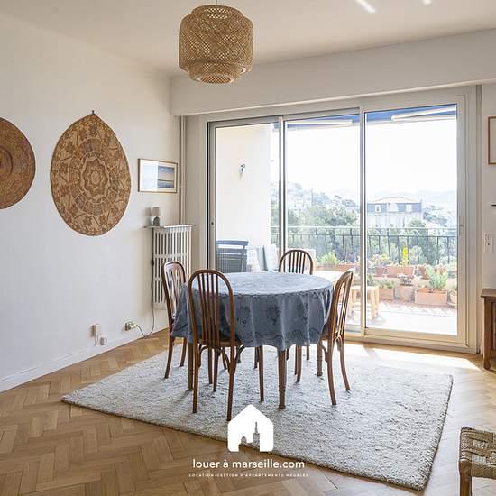 Appartement disponible du 1er Juillet au 28 Novembre 2025. Appartement au calme absolu, T2 de 73 m² traversant entièrement meublé et équipé au sein d'un par fermé et sécurisé avec place de stationnement libre. Entre Endoume et Malmousque, Il se compose d'une entrée avec rangements, d'une grande pièce de vie donnant sur une terrasse de 9m² exposée Est avec vue sur le Parc ainsi que sur la mer, d'une cuisine fermée avec loggia, d'un couloir avec rangements desservant la chambre ainsi que la salle de bain et WC séparés. De nombreux atouts vienn...