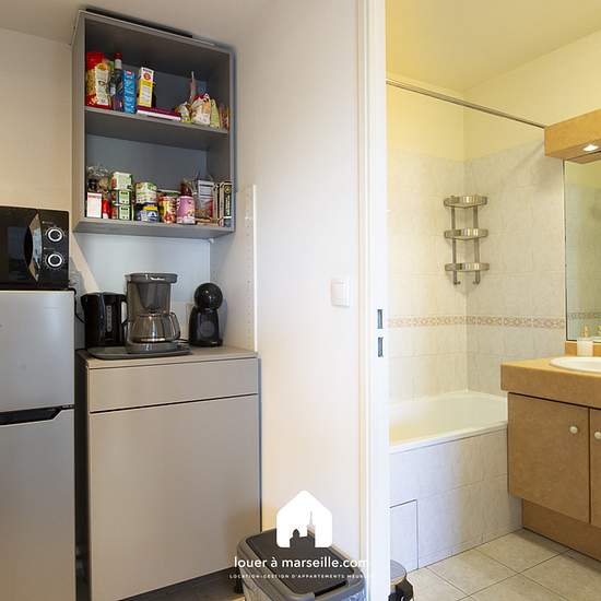 Dans résidence semi-récente sécurisée, très agréable studio climatisé, avec une belle terrasse de 10m². Au calme, dans le quartier privilégié de la Pointe Rouge / Marseilleveyre, l’appartement est situé à 600m de la plage de la Pointe Rouge (2min à pied). Commerces accessibles à quelques centaines de mètres (pharmacie, boulangerie, presse…), bus à 5 min. , proche des écoles d'hôtellerie, du lycée Marseilleveyre et de l’école de la Marine Marchande, ce sympathique studio meublé est idéal pour un étudiant célibataire, une personne seule ou un ...