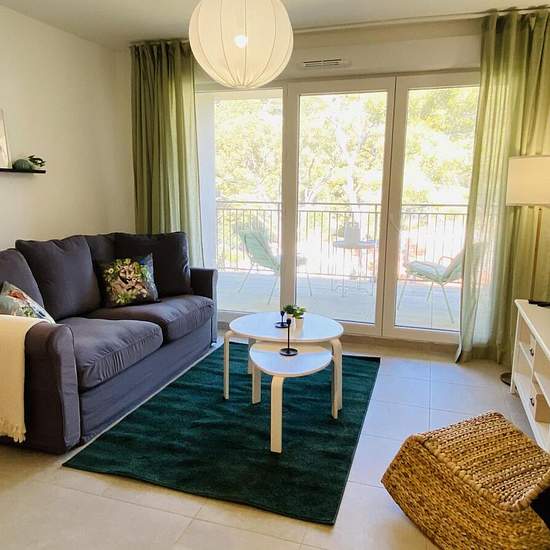 Locamarseille vous propose ce bel appartement niché au coeur du parc du roy d'Espagne. Cet appartement situé dans une résidence neuve se situe au 4ème étage. l'appartement se compose d'une belle cuisine équipée et aménagée, une espace repas, un coin salon cosy donnant sur la terrasse. Depuis la terrasse vous pourrez profiter d'une vue dégagée sur les montagnes et profiter du calme et du chant cigales. Vous pourrez bénéficier d'une belle salle de bain spacieuse et des Wc séparé. Inclus dans l'appartement un box de stationnement fermé en sous ...