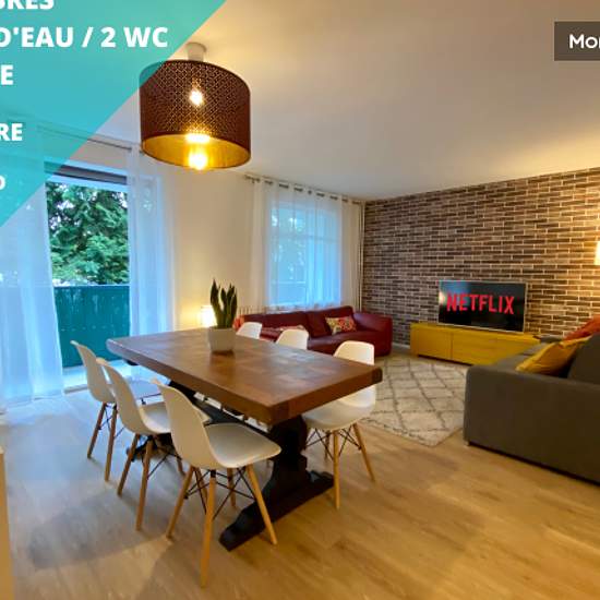 Relax with family or friends in the Casa Opéra de Massy, a stone's throw from the Jacques Cartier Hospital and the Opera House. Entirely renovated in a loft/pop style and decorated with refinement, the apartment can accommodate up to 8 people very comfortably. Large spaces bathed in light, high-end bedding and modern amenities will make your group stay unforgettable. Services included in rent & charges: Water Electricity Heating Internet Parking The security deposit of 1500 € must be paid, before the keys are handed over, by bank transfer...