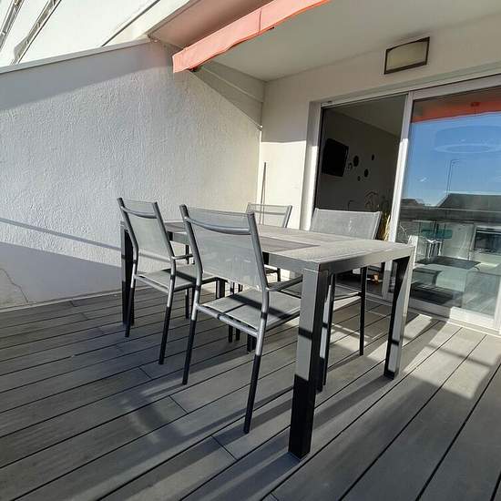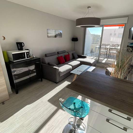 Studio meublé avec terrasse et parking. CARNON PLAGE - Dans les Résidences de la Mer, entre plage et port, studio meublé de 24,15 m2 habitables, en 2ème étage, est composé d'une entrée avec placard, une pièce à vivre avec coin cuisine aménagée et équipée (plaque vitro, lave vaisselle, four, hotte et réfrigérateur/congélateur), une salle d'eau avec WC (emplacement pour le lave linge) et une terrasse exposée sud. L'appartement bénéficie également d'une place de parking extérieure privative et d'un chauffage central collectif. Idéalement situé,...