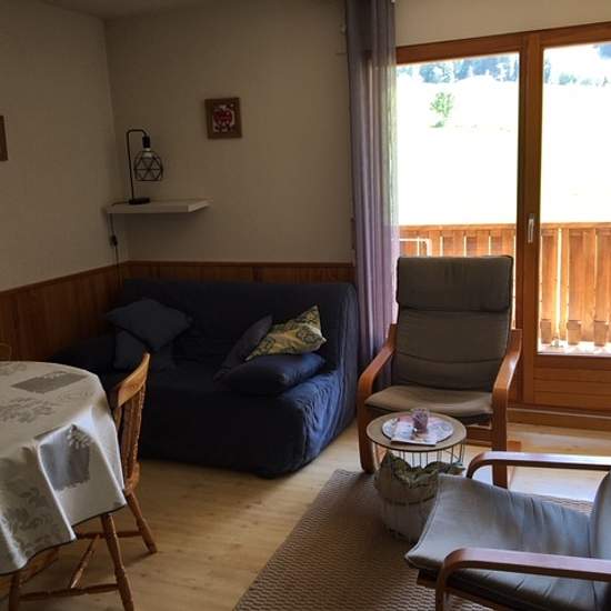 Location saisonnière. Résidence Beau Soleil bâtiment les Chardons au pied des pistes et des écoles de ski. Studio situé au 2ème étage orienté plein sud avec vue sur les pistes comprenant : une entrée avec un coin montagne avec 2 lits superposés, une salle d'eau avec douche, un WC indépendant, un coin cuisine équipé ouvert sur salon (un lit armoire de 140), un balcon, un local à skis collectif et une cave indépendante en sous sol. 350 euros/semaine en été pour les autres périodes, nous contacter. Pour connaÎtre les disponibilités et réserver ...