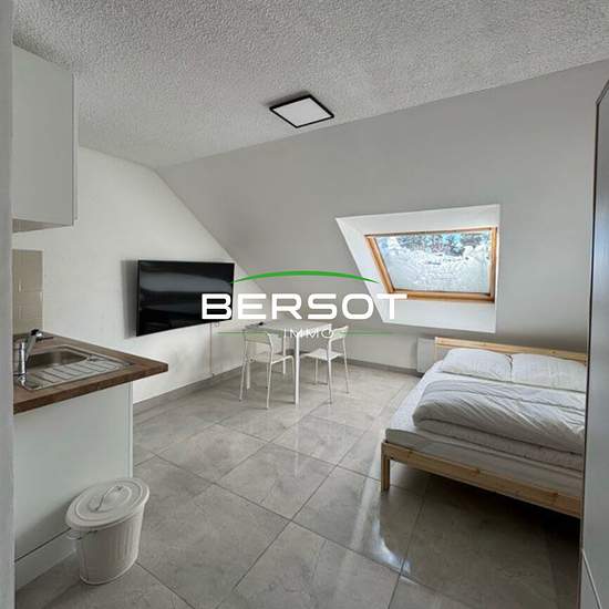 Bersot Immobilier vous propose à la location à Métabief , un T1 meublé de 16.58 m² , au 4e étage. Il se compose d'une pièce principale lumineuse avec cuisine équipé (frigo, micro-onde ,plaque à induction et vaisselle) et espace de rangement , un lit 2 places et un espace repas, d'une salle de bain et WC séparés. Le bien possède également un box de stockage au sous-sol de 1?m², d'un parking privé résidentiel au pied de l'immeuble A seulement quelques minutes de la frontière suisse, cette résidence offre de superbes prestations : piscine, terr...