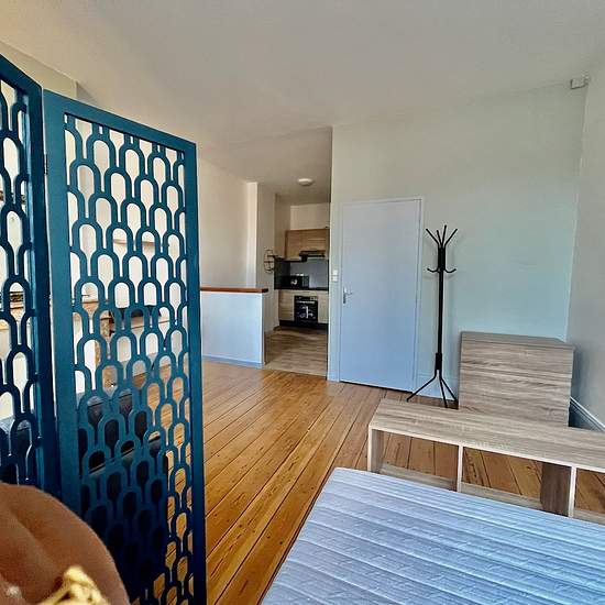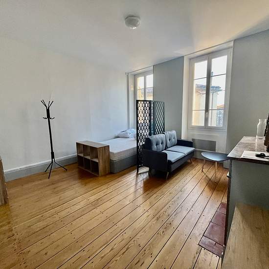 Monclar d'Agenais, dans le village, dans un immeuble de caractère dans une rue calme, studio MEUBLÉ de 35,94 m² avec pièce de vie avec coin cuisine, salle de bains, WC, rénové entièrement avec une jolie cuisine équipée neuve. Appartement lumineux : grandes fenêtres avec double vitrage PVC. Chauffage électrique. EAU comprise dans les charges. Commodités à pied dans le village où la vue est toujours aussi chouette depuis son tour de ville ! Ce logement est disponible le 30/01/2025. Classe énergie D. Les informations sur les risques auxquels ce...