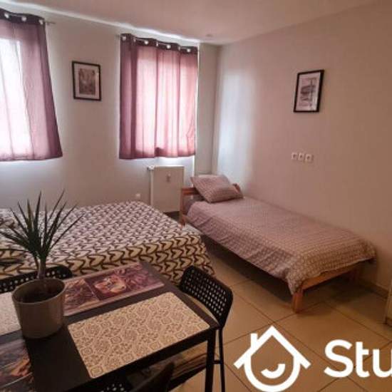 Charmant studio étudiant au 2ᵉ et dernier étage d'une résidence récente, calme et sécurisée, avec laverie à chaque étage. Appartement entièrement équipé : kitchenette (frigo, plaques, évier, hotte, micro-ondes, rangements), salle d'eau moderne (douche à l'italienne, meuble vasque, miroir, WC suspendu). Séjour lumineux avec canapé convertible, espace bureau, table basse, nombreux rangements et coin-repas (table et 4 chaises). TV TNT & Netflix inclus, Wi-Fi, linge de maison et ustensiles fournis. Proche commerces et transports. Updated on 06/1...