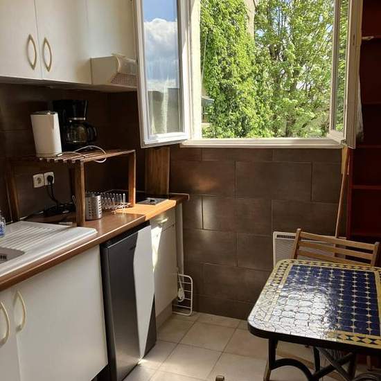 Appartement de 32 m² à louer sur Montreuil Location meublée, beau 2 pièces, double exposition, très clair, au 1er étage, dans petit immeuble. Dans rue calme, à 7 min à pied du métro, ligne 9, Mairie de Montreuil, du théâtre, cinéma, restaurant, etc. et 5 min des commerces, bus, etc. Disponible de suite. Location meublée d'un beau 2 pièces (32 m²), - lumineux, double exposition - 1 chambre (1 lit double, drap, couette, rideaux, oreiller, etc. + rangements) - 1 salon (canapé, table, armoire, etc.) - 1 cuisine ( + lave-vaisselle, micro-onde, va...