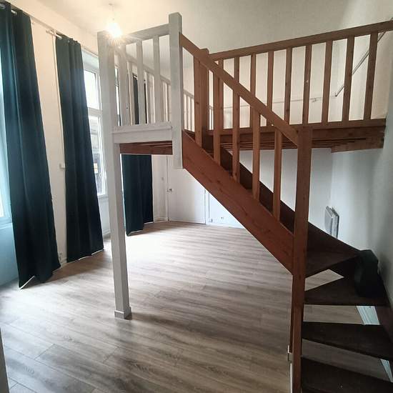 MORLAIX - CENTRE VILLE appartement situé proche des bus et des grands parkings. Cet appartement compte : une entrée , une grande pièce à vivre avec une mezzanine , cuisine , et une salle de bain avec WC . Double vitrage, chauffage électrique Disponible 02.57.650.650 EMAIL