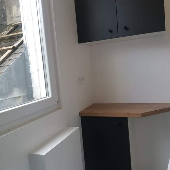 Studio comprenant un salon/séjour, une cuisine et une salle d'eau avec WC. Agréable studio e comprenant : un séjour , un coin cuisine, une salle de bains avec WC - Double vitrage, chauffage électrique Contact : EMAIL - 02.57.650.650