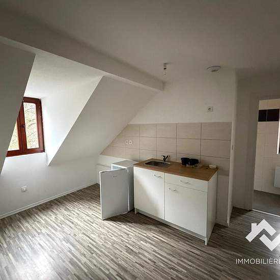 A Munster, Proche des écoles, de la gare et des commerces, logement de type studio d’une surface de 26,80 m² situé dans un petit immeuble, au 2ème étage (sans ascenseur) comprenant une entrée sur la pièce de vie avec espace cuisine (évier et meuble de rangement), une salle de douche avec WC. En annexe : une pièce de rangement (cagibi) dans la cage d’escaliers. Loyer mensuel : 300 euros + Provisions pour charges : 45 € comprenant l’eau froide, la taxe sur les ordures ménagères, les charges concernant les parties communes. Dépôt de garantie : ...