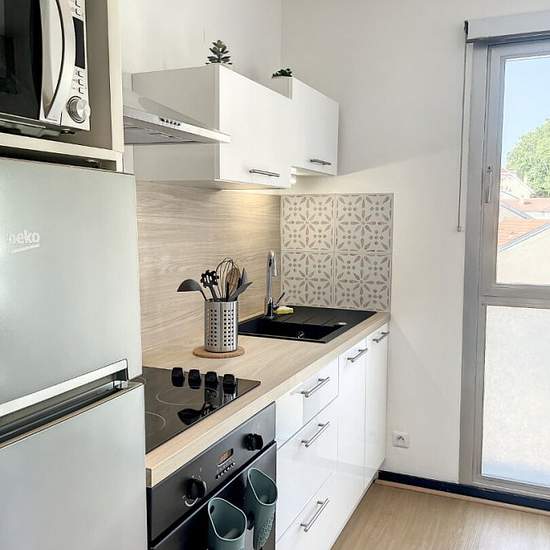 Appartement T1 Meublé de 33 m² Nancy FAC DE LETTRES. NANCY FAC DE LETTRES : Un Grand T1 MEUBLE AVEC BELLES PRESTATIONS comprenant une entrée avec GRANDS PLACARDS, une pièce de vie avec espace séjour LUMINEUX, un espace nuit avec LIT DOUBLE, une cuisine aménagée équipée ouverte sur le séjour, une salle d'eau avec wc (Lave linge) et une place de parking réservée. (Local Velo dans la résidence) DPE D Disponible FIN DECEMBRE 2025 Les informations sur les risques auxquels ce bien est exposé sont disponibles sur le site Géorisques :