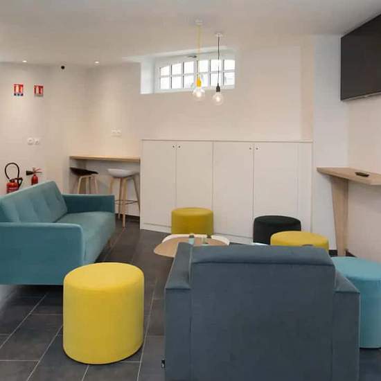 English: This student residence is located 2 km from the city center, with the "Jean Jaurès" trolleybus stop nearby, providing easy access to the Brabois university hubs. The residence offers 106 studios and one-bedroom apartments ranging from 18 m² to 52 m², all fully equipped, along with 18 outdoor parking spaces. Its location allows quick access to both university campuses and the center of Nancy. Each accommodation includes a kitchenette with a microwave, electric stove, and refrigerator, a bathroom with a toilet, and a furnished living-...