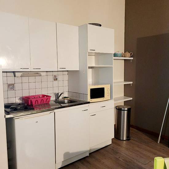 15 rue Jeanne d'Arc à Nancy, centre ville, proche gare et transport en communs, en 2ème corps de bâtiment, un studio entièrement meublé comprenant kitchenette équipée, coin salon et coin chambre, salle de bains avec douche et wc. disponible le 6 janvier 2026