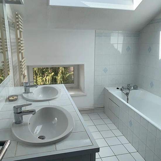 Chambre de 102 m² à louer sur Nancy Loue 3 chambres dans beau f5 meublé en face de l'autre canal, proche école d'ingénieur ou d'architecture, au second et dernier étage de l'immeuble, avec grand salon séjour, lumineux, équipé, canapé cuir noir, table de salon, meuble mural, tv, tables basses, table repas et 4 chaises, avec cuisine équipée séparée, frigo congélateur, cuisson gaz bouteille, four, hotte, micro onde, cafetière électrique, bouilloire électrique, etc… table repas et chaises, salle de bain avec baignoire et douche, meuble double va...