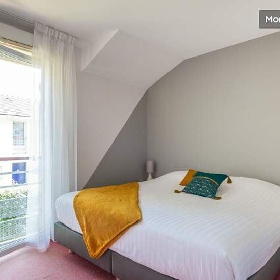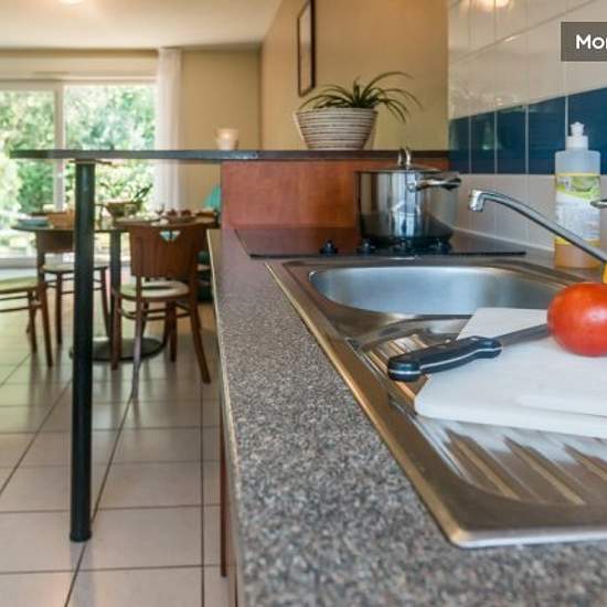 - The 70m² 2-bedroom flat sleeps 4 and comprises a living area with a sofa bed, two bedrooms with a double bed or two single beds per bedroom, a bathroom, an LCD TV and a fully-equipped kitchen. - The kitchen has a fridge, microwave, dishwasher, coffee maker, ceramic hob with extractor hood and conventional oven. Crockery and cutlery are also provided. - Sanitary facilities: bath and 2 separate WCs - Terrace - Laundry room in the flat - Free Wi-Fi access in all flats - Free, secure outdoor parking (surveillance cameras) - Outdoor swimming po...