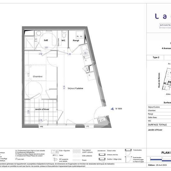 PAS DE FRAIS D'AGENCE – Nantes, quartier Bout des Pavés, à proximité des transports (lignes 59, 96, C2 et 86), T2 NEUF de 41 m², composé d'une pièce de vie de 22 m² avec cuisine aménagée et équipée (plaque de cuisson, hotte), donnant sur un jardin d'hiver de 5 m², d'une salle d'eau avec WC, d'un cellier et d'une chambre avec placard. Une place de parking en sous-sol complète ce bien. Eau froide individuelle. Eau chaude et chauffage gaz urbain compris, ainsi que l'entretien des parties communes et des espaces verts dans les charges. Disponibl...