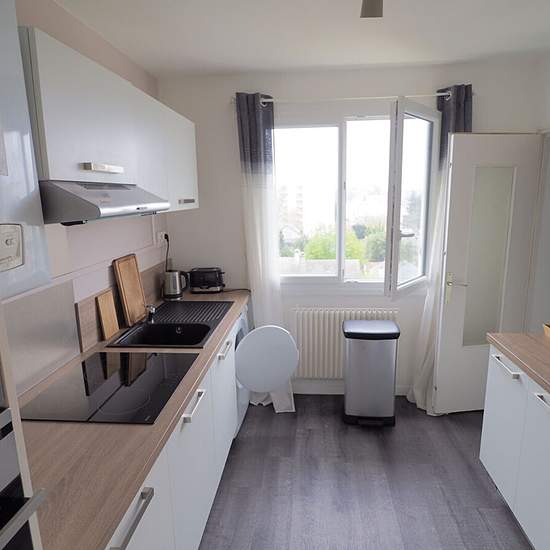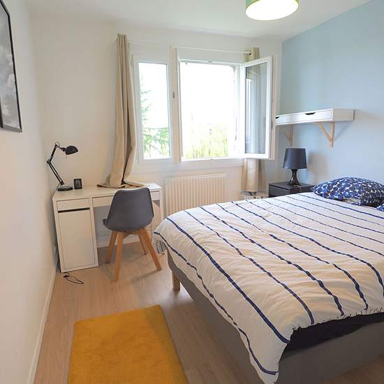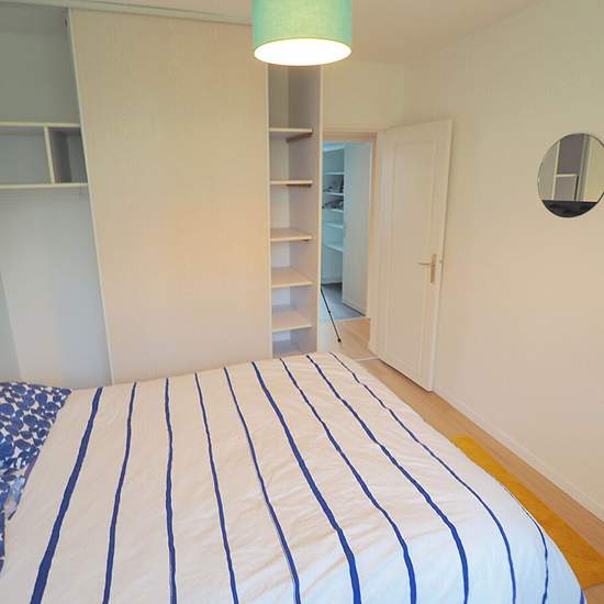 Chambre de 12m² en colocation dans un appartement de 72.43m² situé rue Phileas Fogg à Nantes. Disponible de suite ! L'appartement : Le logement est entièrement meublé, équipé et se compose de 3 chambres. Au 5ème étage avec ascenseur, sans vis à vis, lumineux. Les lignes de bus 11 et C1 se trouvent à quelques pas de l'appartement. Il se compose : - d'un grand salon avec balcon, - d'une cuisine aménagée et équipée (frigo, four, plaques de cuisson, lave vaisselle) - d'une buanderie (machine à laver et sèche linge), - d'une salle d'eau, - d'un W...