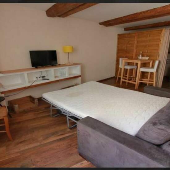 NARBONNE RUE GARIBALDI : Appartement cosy au 1er étage d'un petit immeuble. Grand studio meublé, lumineux et plein de charme(parquet, poutres et pierres) Il est entièrement meublé avec gout. Sans vis à vis Provision pour l'eau et l'électricité comprise dans les charges. A réserver au plus vite, disponible le 1er Janvier 2022
