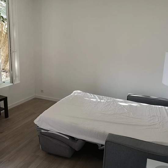 Beau Studio meublé de 19m² en rez-de-jardin avec terrasse de 35m² dans immeuble niçois, au calme. L'appartement se compose d'une entrée avec grand placard, d'une salle d'eau avec wc et d'une pièce à vivre avec cuisine équipée donnant sur une vaste terrasse. Loyer: 760€/mois Charges: 50€/mois Dépôt de garantie: 1520€ Honoraires d'agence: 250€