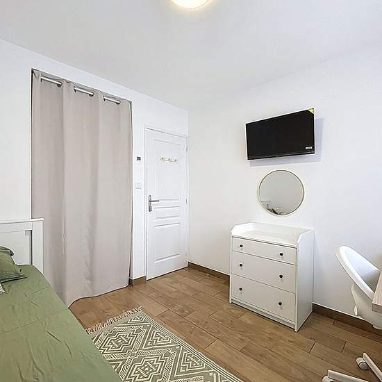 Colocation - dans une résidence bien entretenue, découvrez cette chambre meublée de 10.61 m² au sein d'un appartement en colocation de trois chambres. L'appartement se compose d'une cuisine aménagée et entièrement équipée, d'une salle d'eau et de wc séparés, refait entièrement à neuf et mis à disposition des trois colocataires. La chambre proposée est meublée et climatisée. Elle dispose d'un lit simple, d'un grand placard, d'une commode avec son miroir, d'un bureau et d'une télévision. Le forfait de charges comprend : l'eau, l'électricité, l...