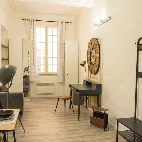 VIEUX NICE, 16 rue benoit bunico: studio meublé de 27m² au 3° étage sans ascenseur avec mezzanine, cuisine aménagée et équipée (lave linge, lave vaisselle, four), salle de douche, double vitrage, Libre de suite