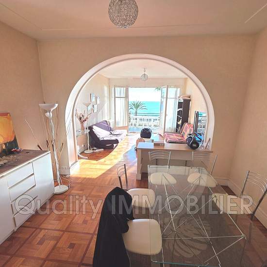 VUE MER PROMENADE des Anglais . DISPONIBLE à Partir du 23 Janvier 2026 LOCATION MEUBLÉE Bail de 12 Mois renouvelable. 3 P de 89 m² environ,avec entrée, salle à manger salon terrasse pleine vue mer, une cuisine équipée, une salle de bain avec Baignoire et Toilettes + Toilettes indépendant. 1 Grande Chambre, lit double, une petite chambre 1 lit aveugle, un canapé lit dans le salon. Chauffage compris dans les charges ( par le sol), eau chaude individuelle. chambre et salon climatisés. Idéal Pied a Terre sur Côte d'azur. dossier séreiux demandé....